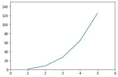 축 범위를 x축은 0에서 6까지, y축은 0에서 150까지로 axis() 함수를 이용해서 축 범위를 바꿔보도록 하겠습니다.
