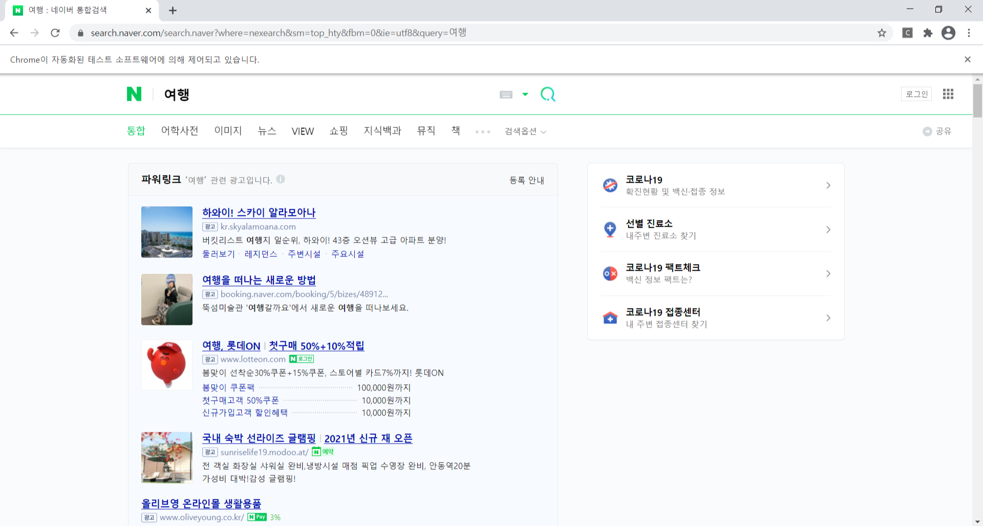 한번 실습으로, "여행" 이라는 검색어를 입력한 뒤 검색하는 코드를 작성해보겠습니다.
