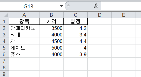 item = ['아메리카노', '라떼', '차', '에이드', '쥬스']