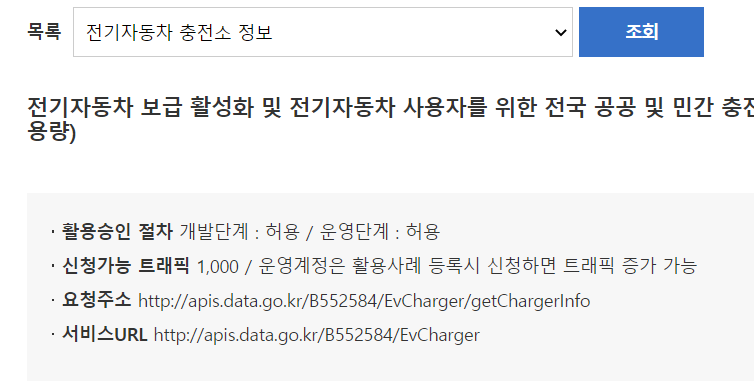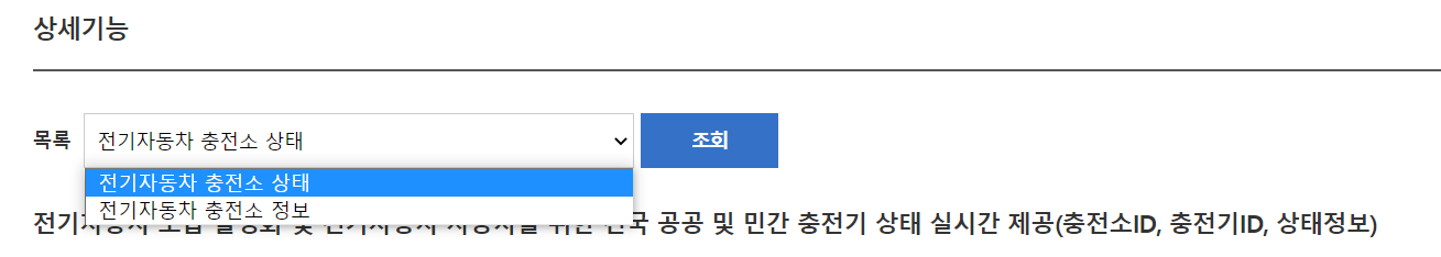 하지만 전기자동차 충전소 정보 제공 서비스는 총 2가지의 상세기능이 있는데요.