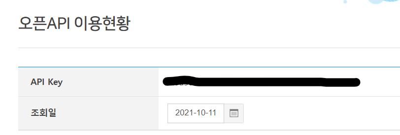 아래 링크로 접속하여 인증키 신청 버튼을 클릭한 뒤 신청을 완료해줍니다.