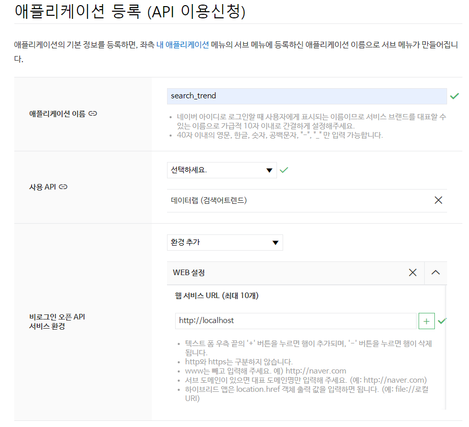 다른 API들과 마찬가지로 데이터랩 API를 활용하기 위해서는 API 이용 신청을 해야합니다.