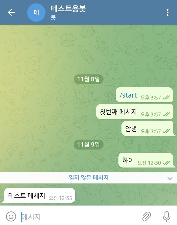 이제 내가 메세지를 보냈을때, 이를 챗봇이 읽은 뒤, 그 메세지에 맞는 답장을 보내보도록 하겠습니다.